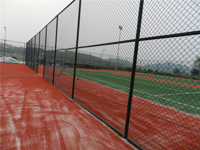 4、體育場圍網(wǎng)的高度及規(guī)格設(shè)計:在網(wǎng)球場兩側(cè)圍網(wǎng)的高度為3米,兩端4米。場地若臨居民區(qū)或馬路,其高度均勻為4米以上,另外在網(wǎng)球場的邊側(cè)為了使觀眾看比賽容易,可設(shè)H=0.8O米的圍網(wǎng)。屋頂網(wǎng)球場的擋網(wǎng)高度為6米以上。體育場圍網(wǎng)基礎(chǔ):圍網(wǎng)支柱的間隔應(yīng)根據(jù)圍網(wǎng)的高度和基礎(chǔ)的深度綜合考慮,一般間隔1.80米-2.0米為宜。 5、防腐處理:防銹底漆加高級金屬漆。體育場圍欄網(wǎng)具有產(chǎn)品色彩鮮亮、抗老化、耐腐蝕、規(guī)格齊全的特點。整體網(wǎng)面平整,強力張緊,不易受外力撞擊變形。體育圍網(wǎng)具有色彩鮮亮、抗老化、耐腐蝕、規(guī)格齊全的特點。網(wǎng)面平整,強力張緊,不易受外力撞擊變形的一種安全護欄網(wǎng)產(chǎn)品。其中現(xiàn)場施工安裝,產(chǎn)品最大特點是靈活性強,可根據(jù)現(xiàn)場要求隨時調(diào)整造型和尺寸。