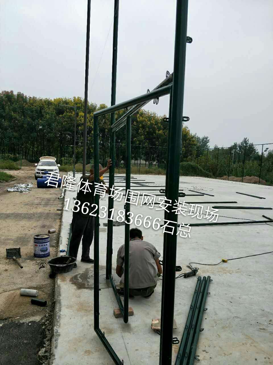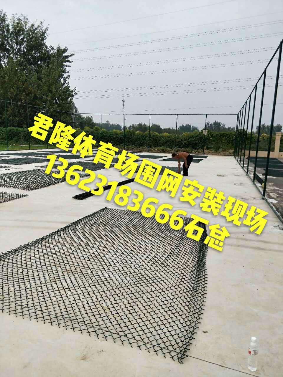 山東君隆體育場圍網(wǎng)2017年9月21日睢寧縣籃球場圍網(wǎng)安裝現(xiàn)場
